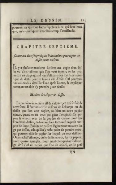 There are several ways to make a copy of a drawing or a painting that one wishes to imitate; these can be used when one is not skilled enough in drawing to do it by sight: this is why we will detail them one by one, & explain how one must proceed to succeed.
