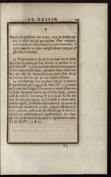 Translation Notes: "Camera obscura" refers to a darkened enclosure in which images of outside objects are projected by lenses onto a surface. "Reflection" and "convex glass" relate to optical concepts used extensively in drawing and scientific exploration during the era.
