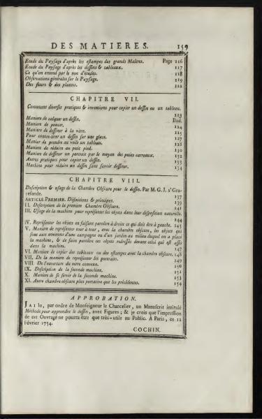 I have read, by order of Monseigneur the Chancellor, a Manuscript titled Method for learning drawing, with Figures; & I believe the publication of this Work can only be very useful to the Public. In Paris, this 12th of February 1754. COCHIN.