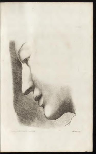 This is Plate 17 from the book, drawn by C.P. Marillier of the Imperial Academy and engraved by Redouté. It features a detailed study of a human face in profile, focusing on anatomy and artistic technique.