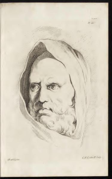 Plate 22Drawn by RaphaelEngraved by C.N. Cochin Page Summary: The image consists of Plate 22 from an art book, with a drawing by Raphael and engraving by C.N. Cochin. This page features a detailed engraving of a man’s head, part of a collection aimed at teaching drawing techniques. << Go to previous page Go to Beginning of this Book Go to Index of this Book's pages Go to list of Books Go to next page >>