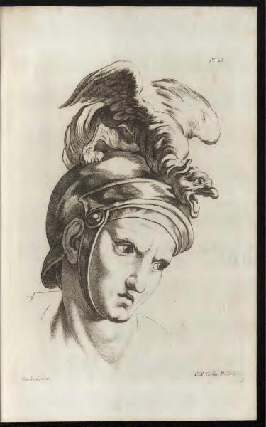 The text includes identifiers for a plate number along with the attribution of artwork. Raphael is acknowledged as the painter, and Cochin is noted as the engraver. These are typical notations for artworks reproduced in historic books for educational purposes.