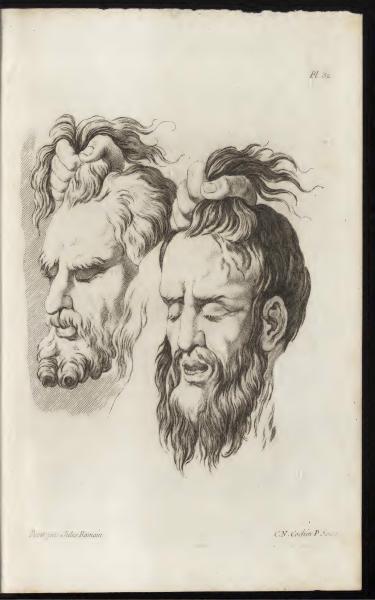 Plate 32.Painted by Jules RomainC.N. Cochin P. Secen Page Summary: The text identifies the page as Plate 32, with the artwork painted by Jules Romain and engraved by C.N. Cochin. The engraving showcases detailed anatomical studies of human heads. << Go to previous page Go to Beginning of this Book Go to Index of this Book's pages Go to list of Books Go to next page >>