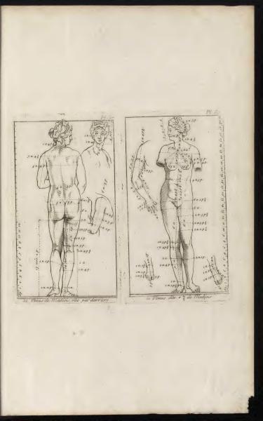 The image provides annotated illustrations of the Venus de' Medici, both from the front and back. These notes are likely aiding in understanding proportion and anatomy in drawing. They serve as instructional guides for artists learning to depict the human figure.