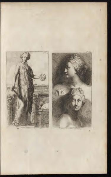 Plate 59 Number IV Tachinoro Plate 60 Page Summary: The text identifies two illustrated plates: Plate 59 featuring 'Number IV Tachinoro,' possibly a classical statue, and Plate 60 displaying a portrait of a woman. These artworks represent classical sculptures and head studies. << Go to previous page Go to Beginning of this Book Go to Index of this Book's pages Go to list of Books Go to next page >>