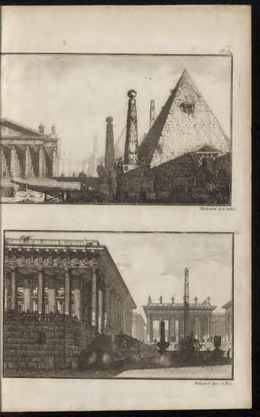 Belliard invented and made this. Page Summary: The text note "Belliard inv. et fec." indicates that Belliard both designed and created the illustrations. The engravings depict Egyptian and Greco-Roman architectural scenes, contributing to the art education focus of the book. << Go to previous page Go to Beginning of this Book Go to Index of this Book's pages Go to list of Books Go to next page >>