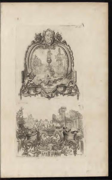 End of the Speeches Page Summary: The text in the image simply states 'End of the Speeches' in French. It is likely a concluding remark or label. The illustrations are complex, featuring statues and architectural elements. << Go to previous page Go to Beginning of this Book Go to Index of this Book's pages Go to list of Books Go to next page >>