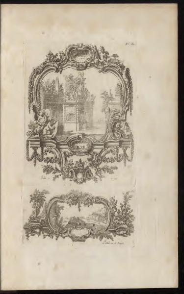 This page from the book displays two ornate frames with landscapes, crafted by Babel. The text identifies the artwork as Plate 86. Each frame borders different scenes, representing detailed artistic designs typical of the era.