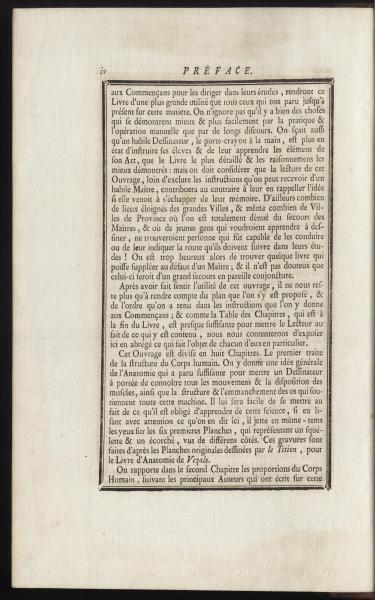 This work is divided into eight chapters. The first deals with the structure of the human body, providing a general idea of anatomy sufficient to enable a draftsman to understand all movements and the arrangement of muscles, as well as the structure and assembly of what supports the entire body mechanism. It will be easy for him to learn what he is obliged to know about this science, if, while reading the details provided here, he reviews the first six plates, which represent a skeleton and an anatomical figure, viewed from different angles. These engravings are based on original plates outlined by Titian for Vesalius' Book of Anatomy.