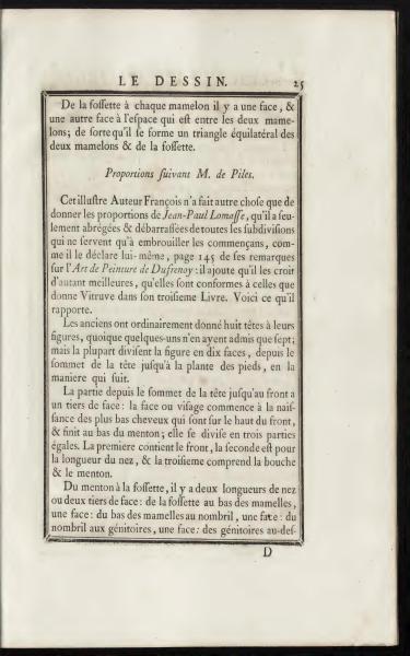 This illustrious French author has done nothing other than give the proportions of Jean-Paul Lomasle, which he has merely shortened and stripped of all subdivisions that only serve to confuse beginners, as he declares himself on page 145 of his remarks on Dufresnoy’s Art of Painting: he adds that he believes them to be better, as they conform to those given by Vitruvius in his third book. Here is his report.