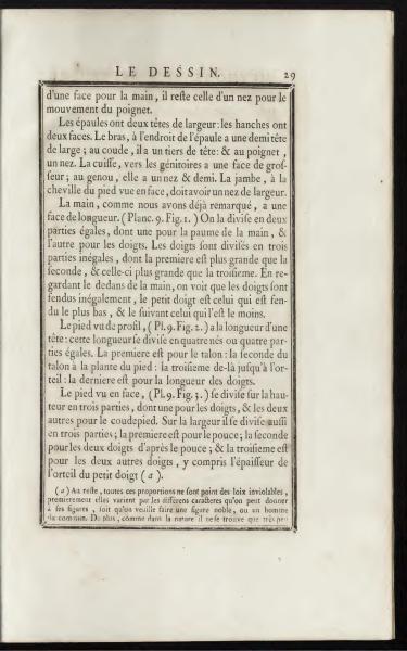 The foot in profile, (Plate 9, Fig. 2.) has the length of a head: this length is divided into four noses or four equal parts. The first is for the heel: the second from the heel to the ball of the foot: the third from there to the toe: the last is for the length of the toes.