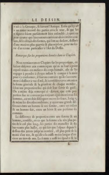 We will conclude this Chapter on proportions by advising beginners that they are not presented with all these measurements of the human body, to encourage them to use the compass to comply at every moment. On the contrary, they must become accustomed to drawing by eye, and they should carefully consider the general shape and size of each limb, according to a fixed proportion that should guide them. It has even been previously noted that this fixed proportion does not always suit all people equally, as one must still distinguish between sexes, ages, and even various conditions; there is a significant difference between a man and a woman, between a child and a grown man, and between a hero and an ordinary person.