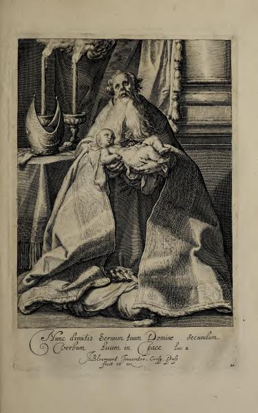 The text taken from a historic page includes a Latin phrase from the Bible, specifically Luke 2, "Now let your servant depart in peace." It credits Bloemaert as the inventor, noting the artistry involved. This aligns with the book's theme of exploring detailed and skilled artistic endeavors.
