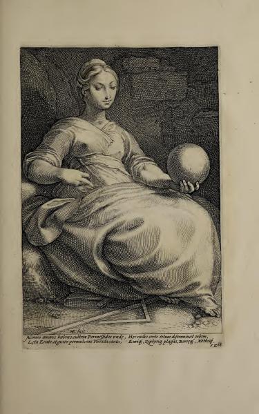 The text is a poetic description associated with one of the Muses, Erato, from Greek mythology. It highlights her role in spreading creativity and music across the world. This represents the inspiration and artistry revered in classical art.
