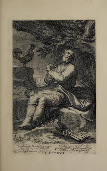 The text describes Saint Peter denying Christ three times before the rooster crowed and then retreating into solitary prayer. In prayer, Peter is depicted as gaining the ability to open and close the celestial poles, symbolizing his spiritual authority. The passage uses imagery of keys to represent access to heaven.