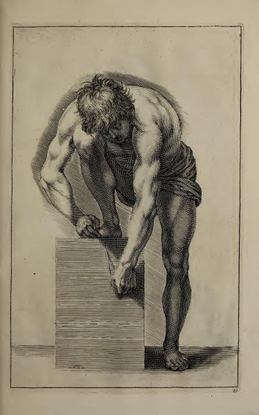 The page contains an illustration typical of Gerard de Lairesse’s instructional style, demonstrating the human form's musculature and posture. The image complements the book's theme of teaching drawing techniques. It reflects the classical artistic emphasis on anatomy and the representation of action.
