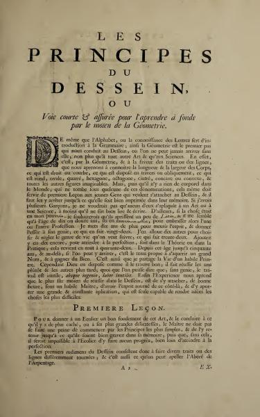 TO give a student a good foundation in this Art, and to guide them to its most hidden aspects or its greatest intricacies, the Master should not hesitate to begin with the simplest Principles, and retain them until they are well engraved in memory; for without this, it would be impossible for the Student to make any progress, let alone reach perfection. The first rudiments of Drawing involve making various strokes or lines differently turned, and this is what one may call the Alphabet of Art.