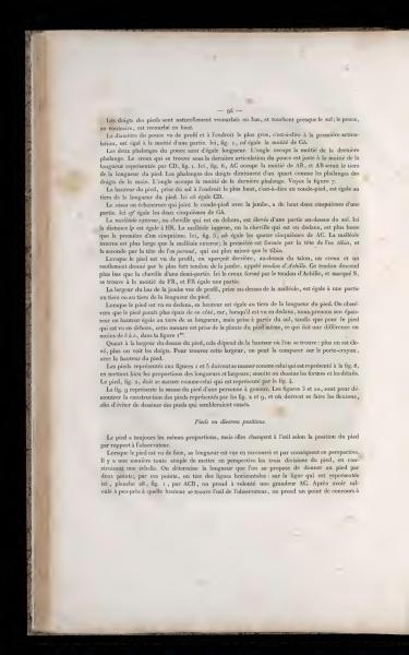 The diameter of the big toe viewed in profile at its widest point, which is at its first joint, is equal to half a part. Here, fig. 1, cd equals half of Gh.