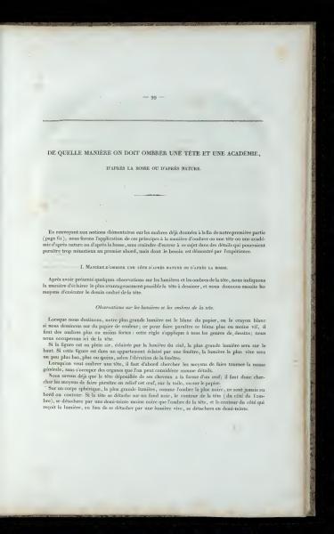 Referring to the basic ideas about shadows given at the end of our first part (page 61), we will apply these principles to shading a head or an academy figure from nature or a model, without fearing to delve into details that may seem too meticulous at first glance, but whose necessity is demonstrated by experience.