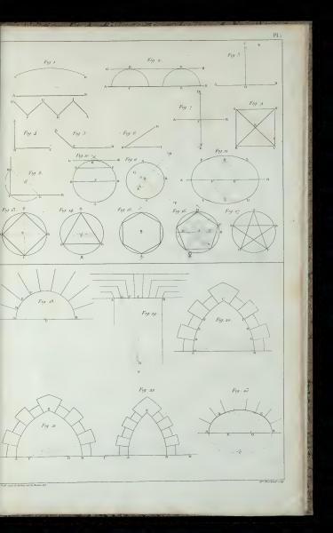 This page consists of labeled diagrams illustrating geometric shapes such as semi-circles, circles, and polygons. These are meant to teach drawing techniques through the use of labeled points. The figures are essential in understanding and replicating geometric proportion and structure.