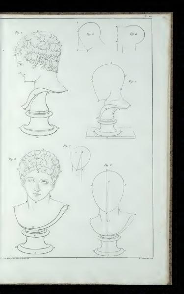 The page from the historic book displays detailed diagrams labeled as figures 1 to 7, which illustrate heads and busts for art instruction. These images help in understanding proportions and angles in portrait drawing. The page is published by J. de Mancy following methods by E. Le Breton.