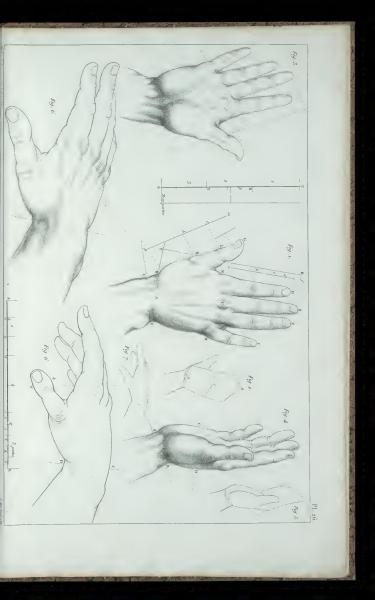 The page contains illustrations of hands with figure labels, likely as part of a drawing instruction. The illustrations serve as examples of hand anatomy and positions. Minimal text accompanies these images, mainly to label the figures.