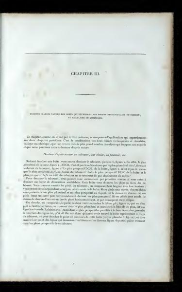 Knowing how to draw a box, you will be able to draw the stool, plate 5, figure 2. Indeed, the geometric plan of the box, figure 1, ABCD, is it not the same as the geometric plan abcd, forming the front of the stool, figure 2? Is the perspective plan DCFI of the box, figure 1, not the same as the perspective plan dcfi, or top of the stool? Finally, is the perspective plan BEFC of the box and the perspective plan befc of the side of the stool not absolutely the same?