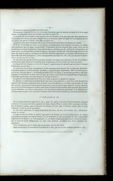 When the head is straight and placed approximately at the eye level of the viewer, the operational lines present straight lines. If, on the contrary, the head is tilted to the side, as represented in figures 1 and 2 of plate 13, these operational lines become as many circles, which are placed obliquely, and in this position, these lines have a very pronounced curvature.