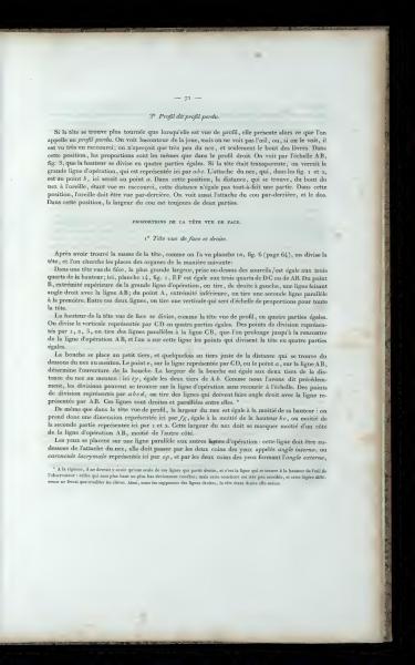 In a head viewed from the front, the broadest width, taken above the eyebrows, is equal to three-quarters of the height; here, plate 14, fig. 1, EF is equal to three-quarters of CD or AB. From point B, the upper end of the main line of operation, draw a line at a right angle from right to left. From point A, the lower end, draw a second line parallel to the first. Between these two lines, draw a vertical line which serves as a scale of proportions for the entire head.