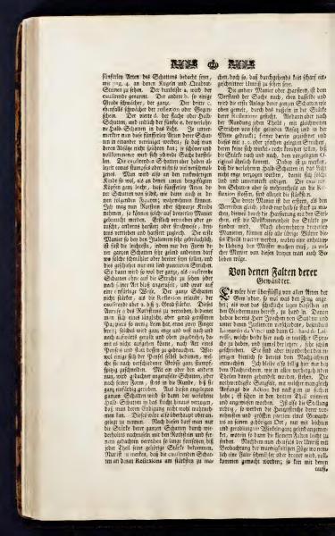 The text discusses five different types of shadows relevant in art, emphasizing how they blend and impact artistic depictions. Techniques are provided for working with shadows on paper using black chalk, focusing on enhancing portrayals. Additionally, advice on depicting the folds of garments is given, referencing notable artists like Leonardo da Vinci.