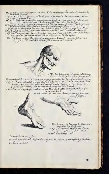 1. The side of the forehead (Msc.) originates from the upper part of the basket-shaped bone, and ends above the cut-out muscles.