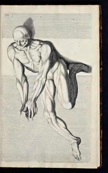 AX Page Summary: The image contains the notation 'AX' but has no other text. It features a detailed anatomical drawing of a human figure in motion. The rendering is consistent with 18th-century studies of the human form. << Go to previous page Go to Beginning of this Book Go to Index of this Book's pages Go to list of Books Go to next page >>