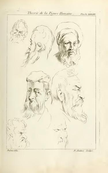 Theory of the Human FigurePlate 33Rubens drewP. Aveline engraved Page Summary: This page is a plate titled 'Theory of the Human Figure,' plate 33, showcasing sketches of heads. Rubens created the designs, and P. Aveline engraved them. << Go to previous page Go to Beginning of this Book Go to Index of this Book's pages Go to list of Books Go to next page >>