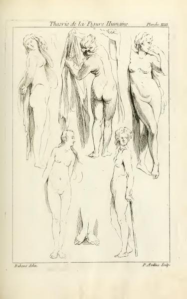 Theory of the Human Figure. Plate 42. Drawn by Rubens. Engraved by P. Aveline. Page Summary: The text is a title and credits for an illustration from a book on human anatomy and art. It identifies the plate as number 42 and credits Rubens for the drawing and P. Aveline for the engraving. << Go to previous page Go to Beginning of this Book Go to Index of this Book's pages Go to list of Books Go to next page >>