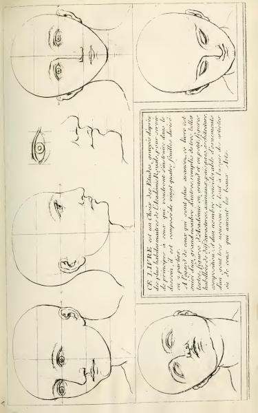 This page details a book that is a curated collection of studies by esteemed masters from the Royal Academy of painting and sculpture. It includes numerous portraits and sculptural studies aimed at both perfecting skilled artists and aiding beginners. The book is intended as a comprehensive guide for developing artistic technique according to customary standards of the time.