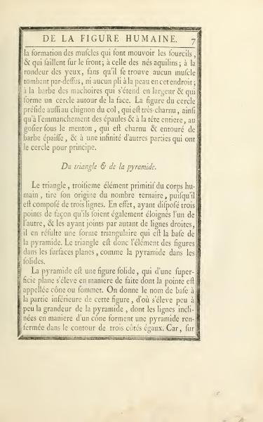 The text examines the human body's structural elements, focusing on the relationship between circles, triangles, and pyramids in anatomy. It describes the influence of the circle on facial features and morphology, then explains the geometric principles of the triangle and pyramid. These shapes are fundamental in understanding both planar and solid structures.