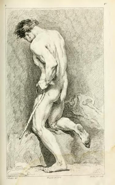 The text contains annotations related to the illustration, crediting the artists and engravers involved. It mentions "C. Vanden del" and "Aveline, inv. Sculp," referring to the creators of the engraving. These notes accompany the artistic depiction, likely as part of the book's documentation approach.