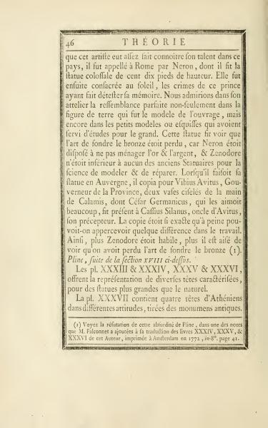 (1) See the refutation of this absurdity by Pliny, in one of the notes that Mr. Falconnet added to his translation of books XXXIV, XXXV, & XXXVI of this author, printed in Amsterdam in 1772, in-8°. page 41.