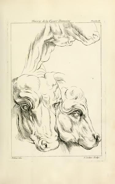 The image is titled "Theory of the Human Figure" and is Plate II from the series. It was drawn by Peter Paul Rubens and engraved by Pierre Aveline. The piece is part of a collection focusing on the study of anatomy.