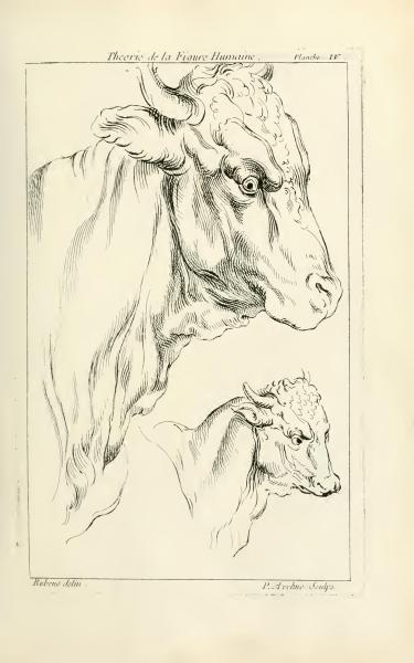 This page from "Theory of the Human Figure" by Peter Paul Rubens contains text indicating it is Plate IV. The drawings on this page were executed by Rubens and engraved by Pierre Aveline. The text provides credits for the artistic and engraving work.