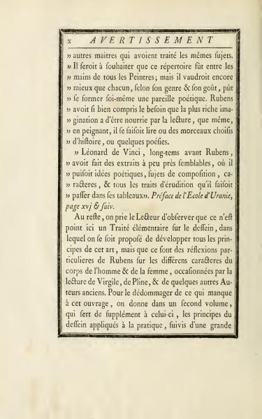 "Leonardo da Vinci, long before Rubens, made similar extracts, where he drew poetic ideas, subjects of composition, characters, and all the traits of erudition he conveyed in his paintings." Preface to the Urania School, page xvi and following.