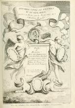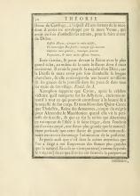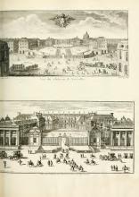 The text provides credits to artists involved in the creation of the depicted engravings. Le Pautre is mentioned as the creator of one of the illustrations, while Chartrand is credited for the other. These engravings are part of the work translated from Latin, highlighting historical scenes and objects. |