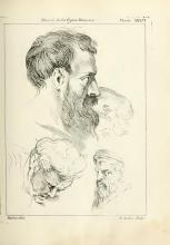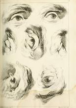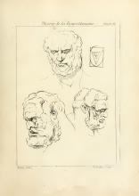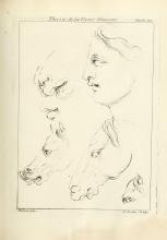 This section compares human facial features to those of certain animals, notably the horse and the bull. It explains how specific anatomical features like the head's shape and the cheeks are rendered. The text outlines what the plates illustrate regarding these comparisons and mentions Julius Caesar and Hercules in relation to these characteristics. |
