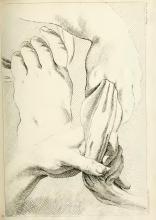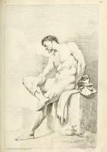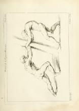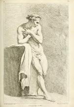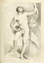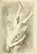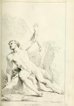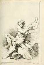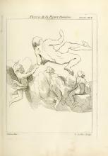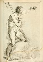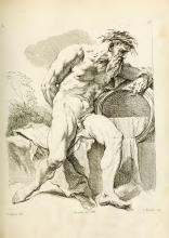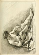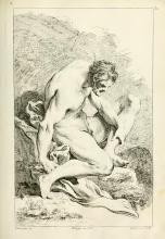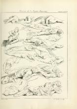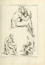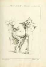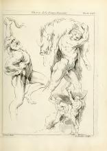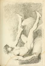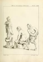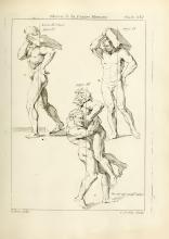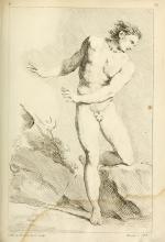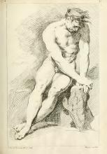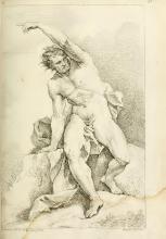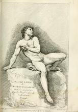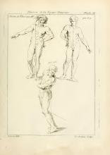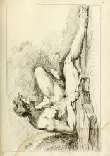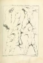 The text describes the creators of the artwork: C. Natoire designed and sculpted it while Buqouer executed it. The artwork appears to depict an almost nude male figure and is part of anatomical or artistic studies by Rubens. |