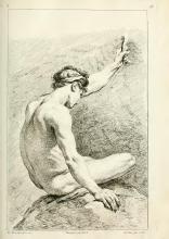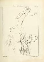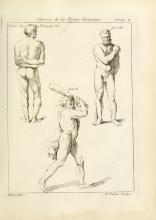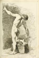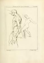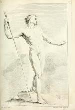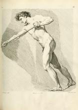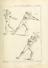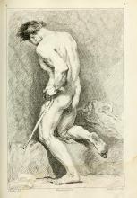 The image credits the drawing to C. Natoire and the engraving to Huguier, with the number '42' marked. It showcases a male figure, demonstrating principles of human figure drawing. The emphasis is on anatomical accuracy and dynamic pose, in keeping with the book's focus on figure study. |
