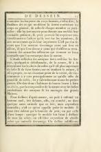 The text discusses the depiction of human figures, emphasizing the importance of balanced proportions to maintain elegance and prevent deformity. It cites the statue of the Gladiator in Rome as a fine example and explains how artists and sculptors have traditionally created beauty based on these principles. The text also contrasts different figure types, illustrating how characteristics attributed to figures like Hercules are used in artistic representation. |