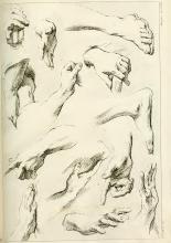 The text describes a collection of examples illustrating different parts of the human body, alongside various academic figures and prints from renowned masters of the modern French School. These two volumes are set to release simultaneously and will be available for purchase either together or separately for the convenience of art enthusiasts. |