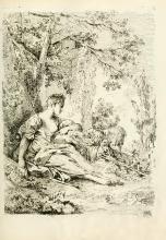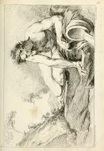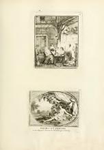 The text under the second image states that it is titled "Bacchus and Erigone" and was engraved by P. Aveline from a design by S. Le Clerc. The image appears to depict a classical mythological scene. |
