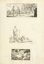 The text consists mainly of captions for the images, identifying one of the engravers as C. Silvestre, who invented and engraved the scenes. Another artist, A. Schoharide, is credited with making one of the pieces. These captions suggest a collaborative effort in the creation of the artworks. |