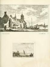 The text credits I. van Goyen as the inventor and I. de Vischer as the maker of the engravings. These are likely artistic attributions. The engravings are part of an art book featuring historic compositions. |